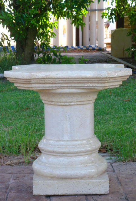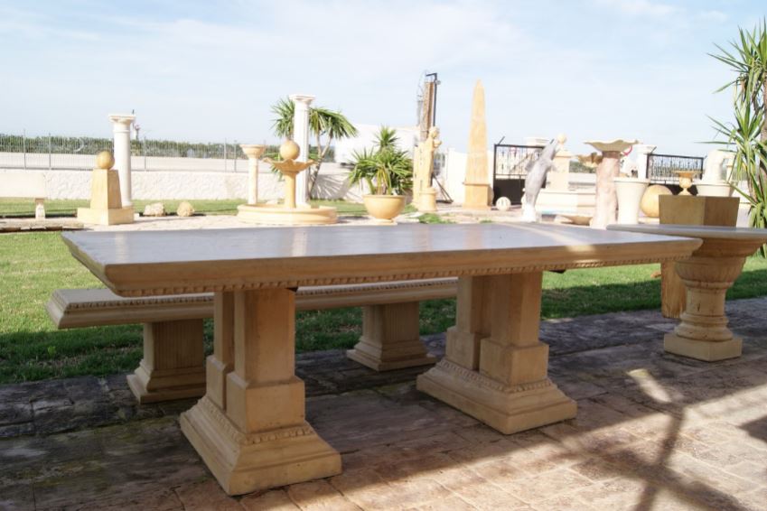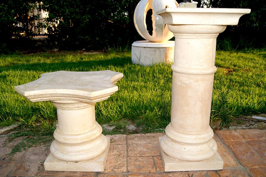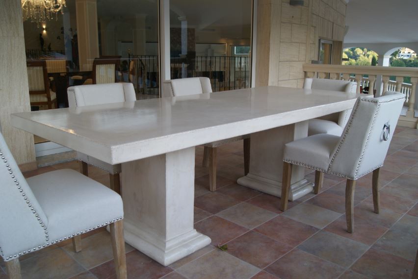 Hechas a medida y a mano, pueden convertirse en una pieza única y exclusiva. El cliente decide la moldura deseada, el modelo de columna y base, el color, acabado…una mesa personificada para cada cliente. Debido a su resistencia al sol, la lluvia, la salitre del mar... son ideales para decorar su jardín, porche o cualquier lugar en el exterior. La longitud máxima de una pieza es de 2,40 de largo, por un metro de ancho. Si el ancho es de 1,10 entonces podemos hacerla hasta 220.